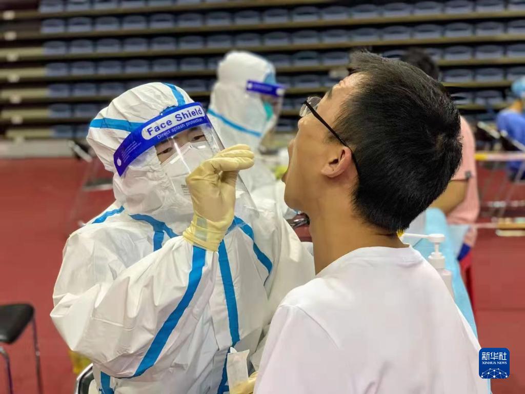 2021年,馮志偉(前左)在南京參加抗疫志愿服務。新華社發(fā)