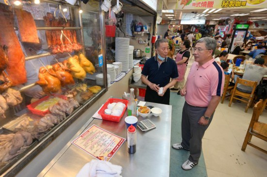 10月1日,香港約3600家食肆推出折扣。圖為灣仔鵝頸街市一家推出外賣優(yōu)惠的燒味店。新華社發(fā)(香港特區(qū)政府供圖)