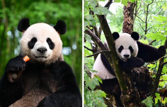 拼版照片:左為大熊貓“安安”,右為大熊貓“可可”。9月26日,第三對(duì)中央政府贈(zèng)港大熊貓“安安”“可可”搭乘專機(jī)前往香港定居海洋公園。新華社發(fā)(中國(guó)大熊貓保護(hù)研究中心供圖)