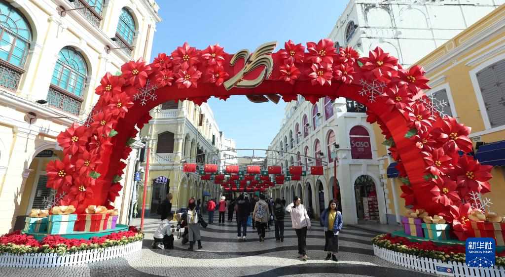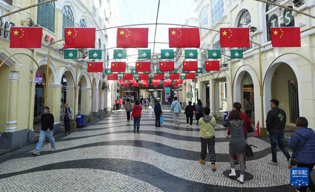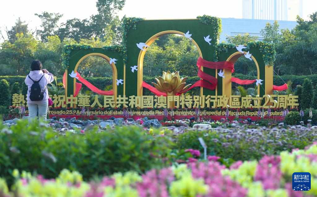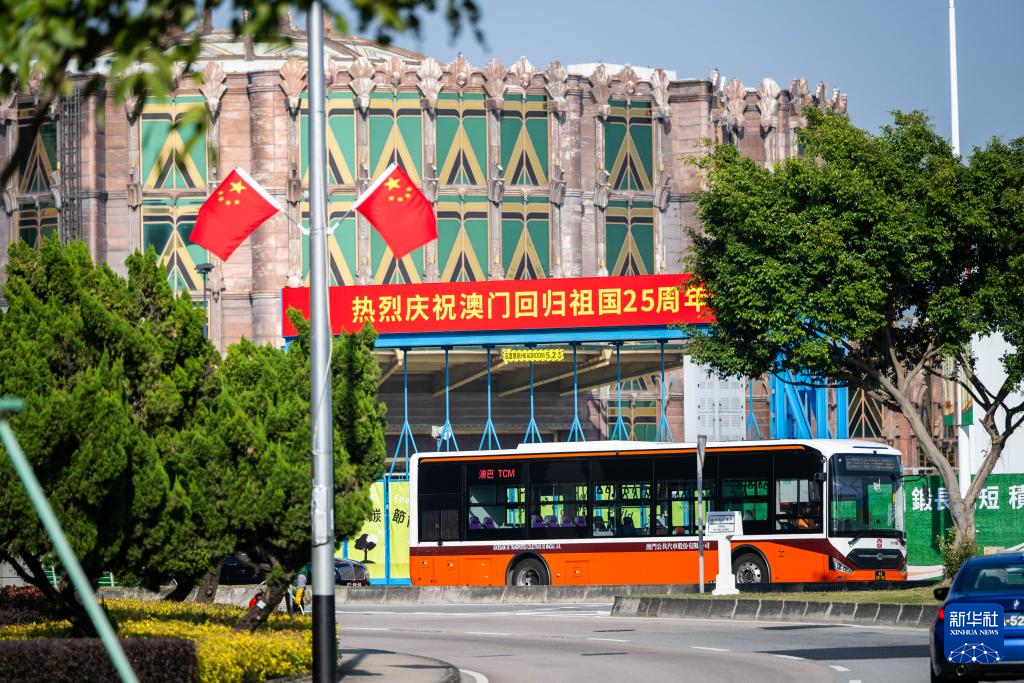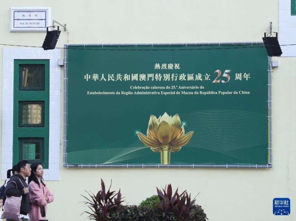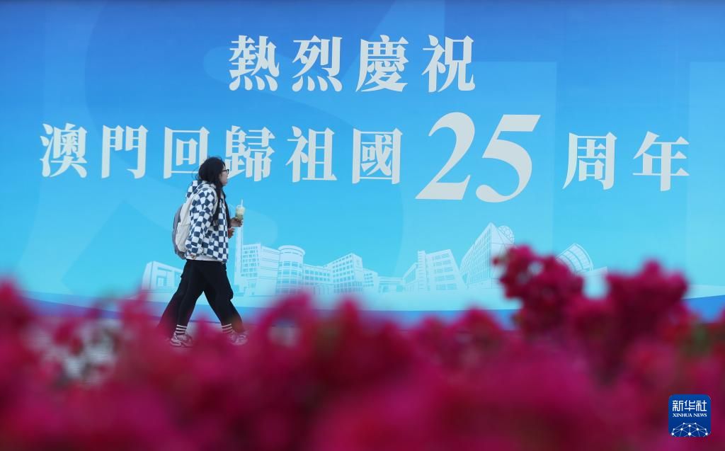 回歸祖國25周年前夕,澳門街頭裝扮一新,洋溢著喜慶氣氛。