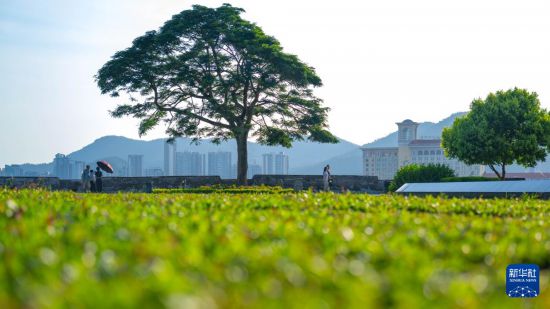 2025年7月9日,游客在澳門(mén)大炮臺(tái)花園游覽。新華社發(fā)(張金加 攝)